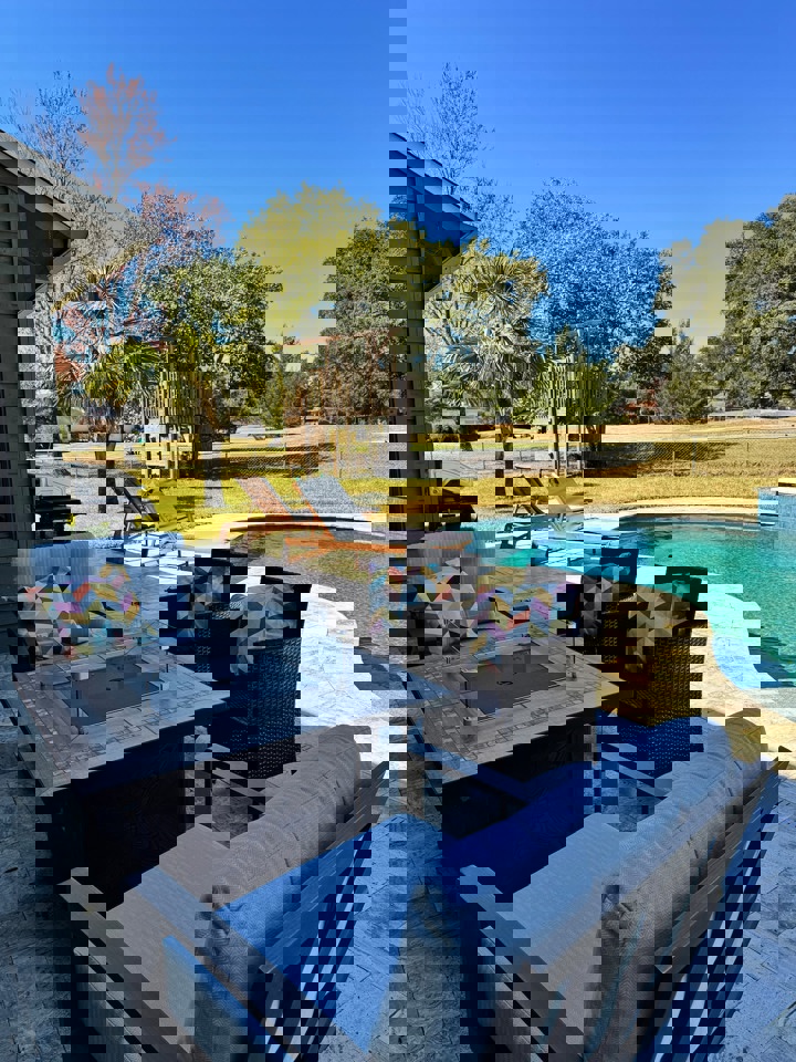 Room for rent 10 mins from Eglin AFB. Room has: King bed, dedicated bathroom, closet (empty upon arrival), built in desk, and high-speed internet. Guest has access to: kitchen, patio, and saltwater pool. Our house is on a water filtration system, so no hard water, and no need to buy bottled water. We are a couple that works from home. We are home most of the time unless traveling. No pets allowed. *Military Preferred. The room and bathroom is on the second floor.
