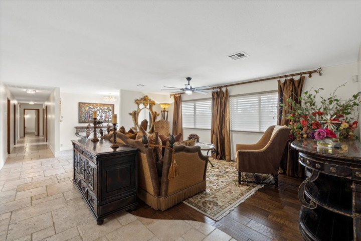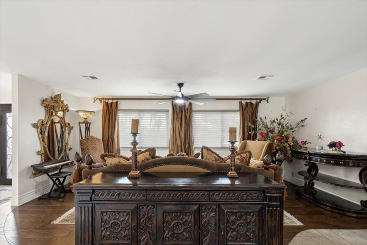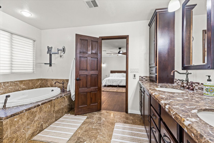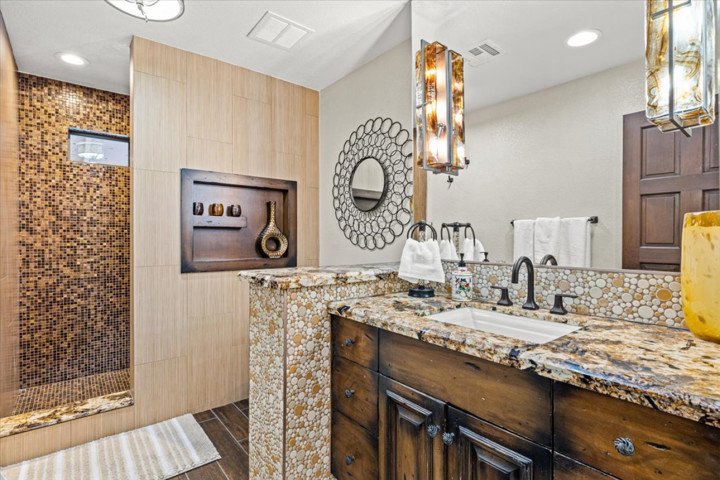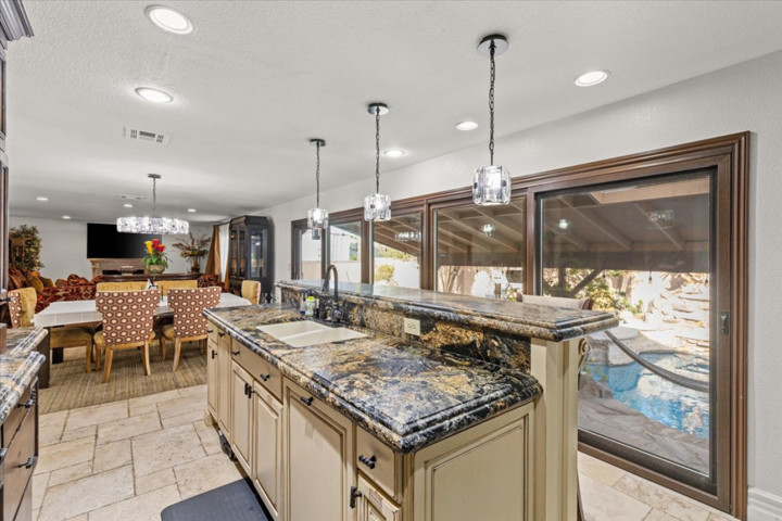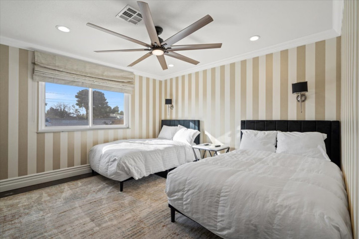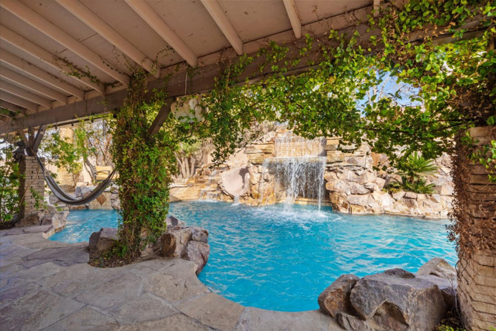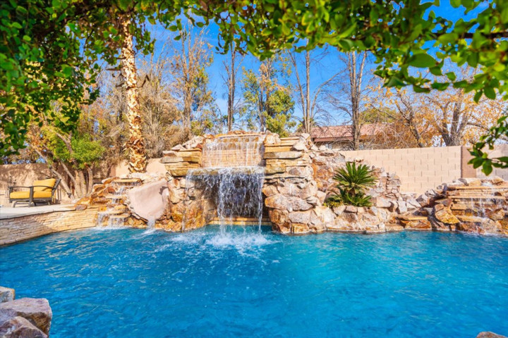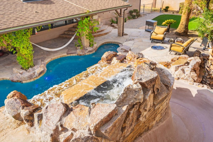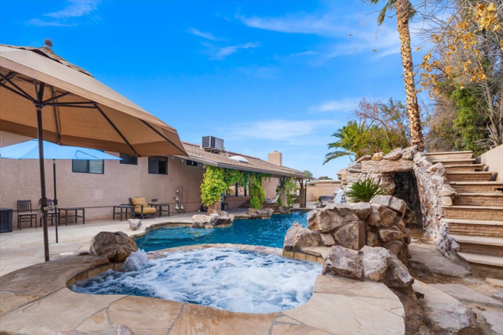 Welcome to this stunning 3-bedroom, 2-bathroom oasis located in the heart of Las Vegas, offering the perfect blend of luxury and comfort. This modern home is designed with both relaxation and entertainment in mind, featuring a spacious living room with a cozy seating area and a dining space perfect for hosting family and friends. Step outside to your own private paradise—an inviting pool surrounded by lush landscaping, a soothing waterfall feature, and a hot tub to unwind in.