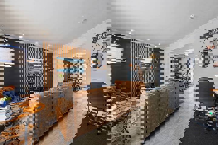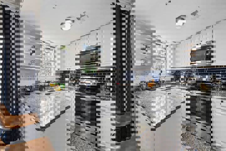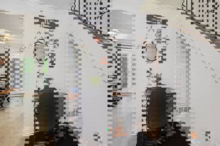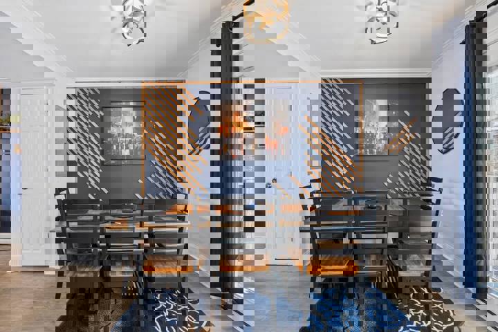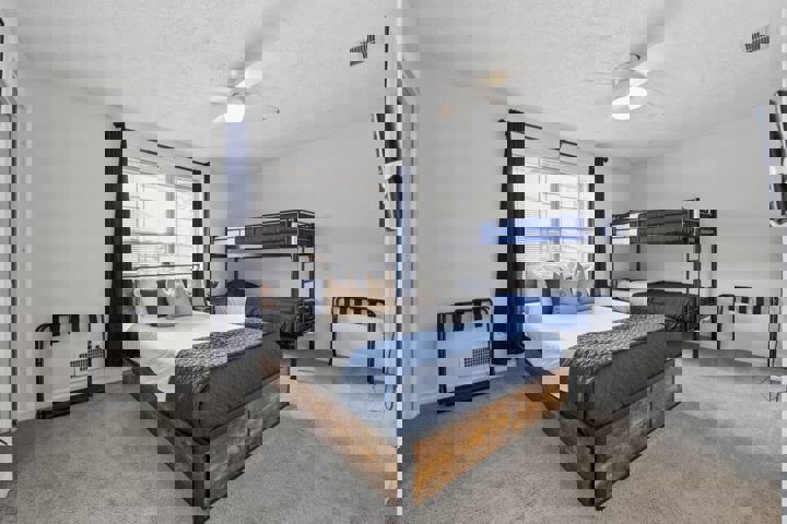The House of Blues is a uniquely themed retreat featuring a stunning blue ambiance, elegant wood designs, and sophisticated bluesy decor. Adorned with jazz instruments and located near Truist Park, this stylish and comfortable haven is ideal for music enthusiasts and those seeking a memorable getaway. The whole group will enjoy easy access to everything from this centrally located place. The House of Blues is a 2BR/2.5BA stylish sanctuary that sleeps up to 9 guests. This home combines jazz-insp...