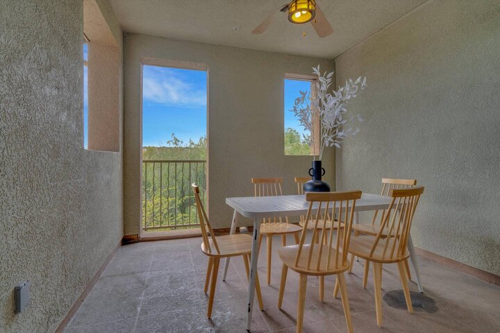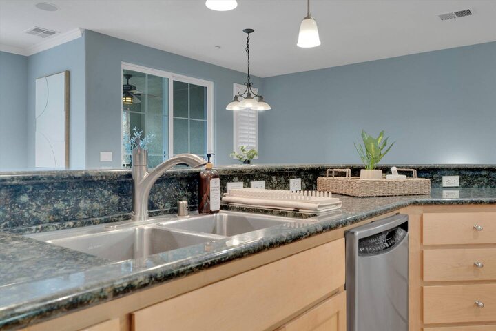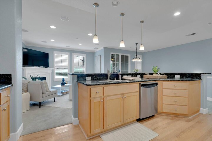 ✤ Open Concept Area Features ✤ ✦ Living area ✦ Dining area including table and bar ✦ Kitchen with island for cooking and convenience Living area features ☛ Cozy carpeted space for hanging out and watching TV. ☛ Couches for 4, with plenty of bar and dining table seating for many more. ☛ SmartTV for streaming the game or latest movies! Streaming service is NOT included. Kitchen and Dining area features ☛ Full dining table in the dining area. ☛ Modern appliances and cooking ware make cooki...