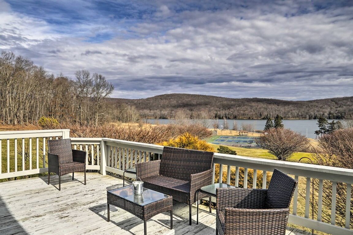 Relax and recharge in this spacious lake-view retreat with cozy interiors, a charming stone fireplace, and stunning views from the deck. Perfect for families or friends, this home offers peaceful surroundings, access to tennis courts, and plenty of room to unwind. Just minutes from the water, hiking, and outdoor fun - your perfect getaway starts here. PROPERTY HIGHLIGHTS • 3 Bedrooms: 3 King Beds, 1 Queen Bed, 1 Queen Sleeper Sofa • Fireplace • Ceiling Fans • Fully Equipped Kitchen • High-spee...