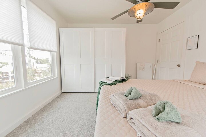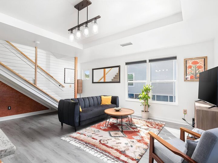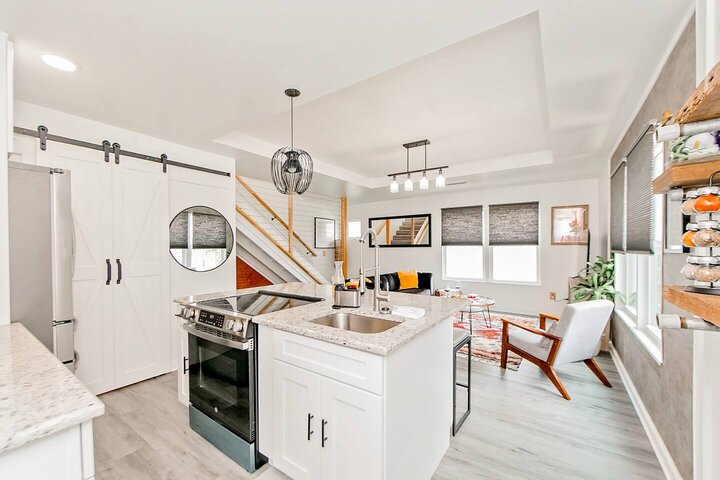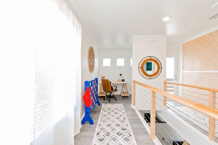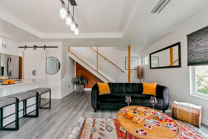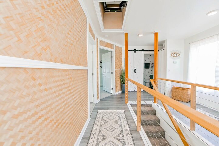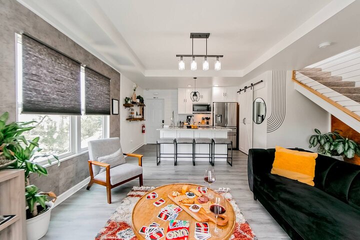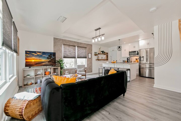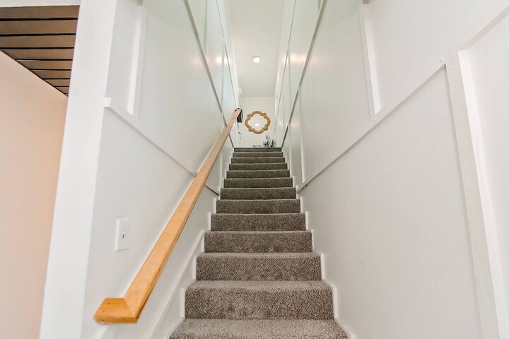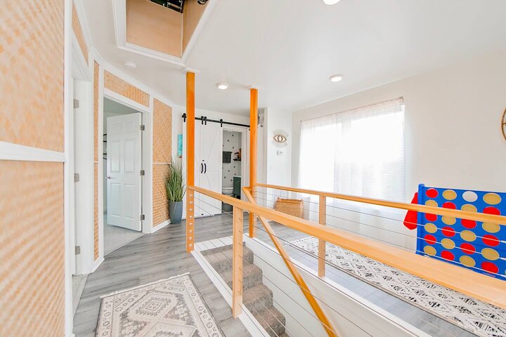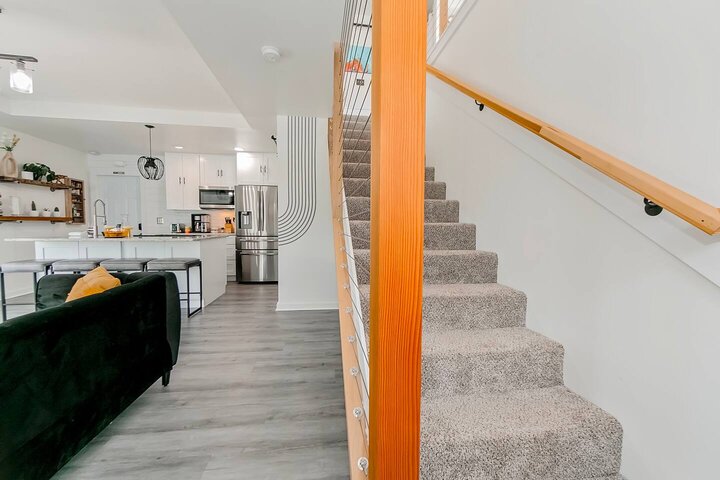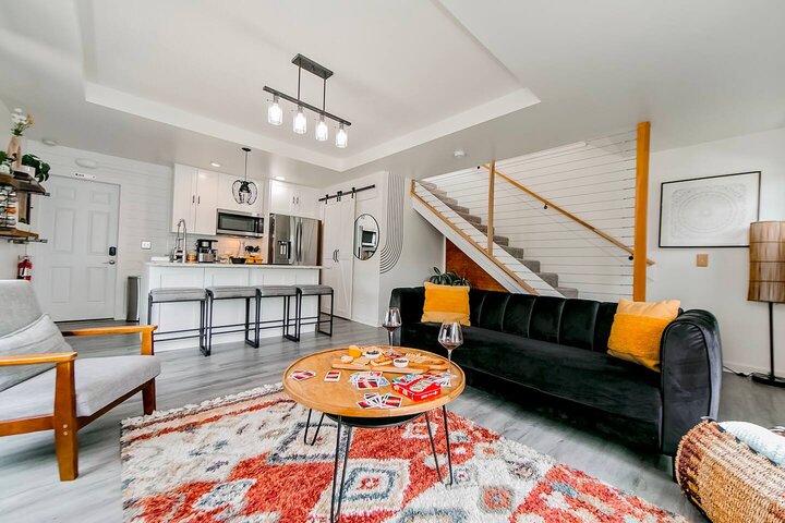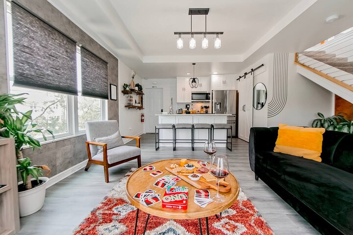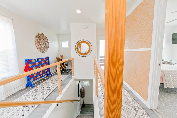 •Home Layout • Upper Unit (2nd and 3rd floor): Two-level home (2nd and 3rd floor) with a private rooftop balcony Includes a chic living area, full kitchen, dining area, 2 bedrooms, and 2 full bathrooms Lower Unit: Single-level (1st floor) home with a spacious open layout Includes a comfortable living area, full kitchen, dining area, 3 bedrooms, and 2 full bathrooms •Bedrooms • Upper Unit (2 Bedrooms): Bedroom 1 – Queen Bed (Sleeps 2) Bedroom 2 – Queen Bed (Sleeps 2) •Bedrooms • Lower Unit...