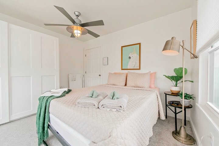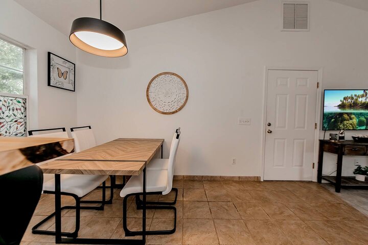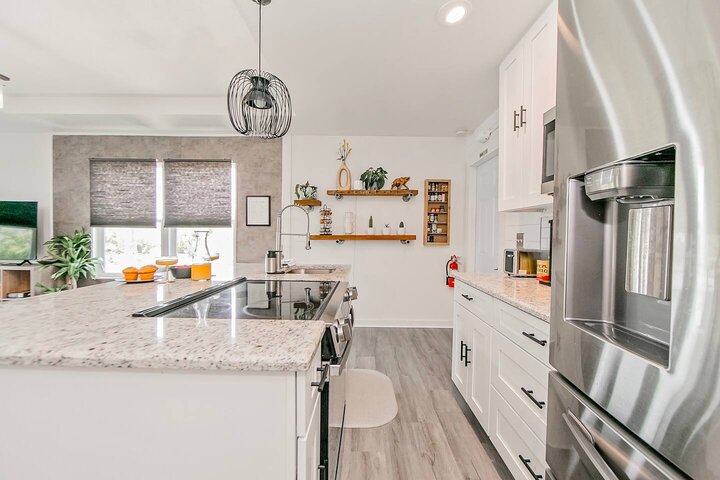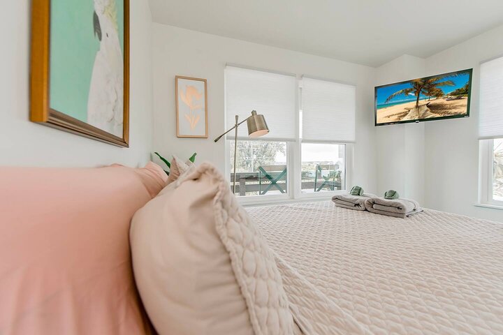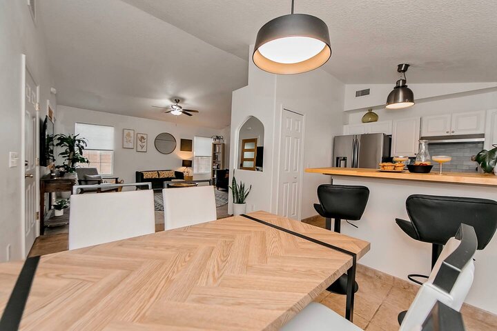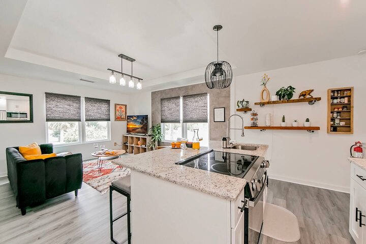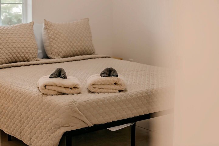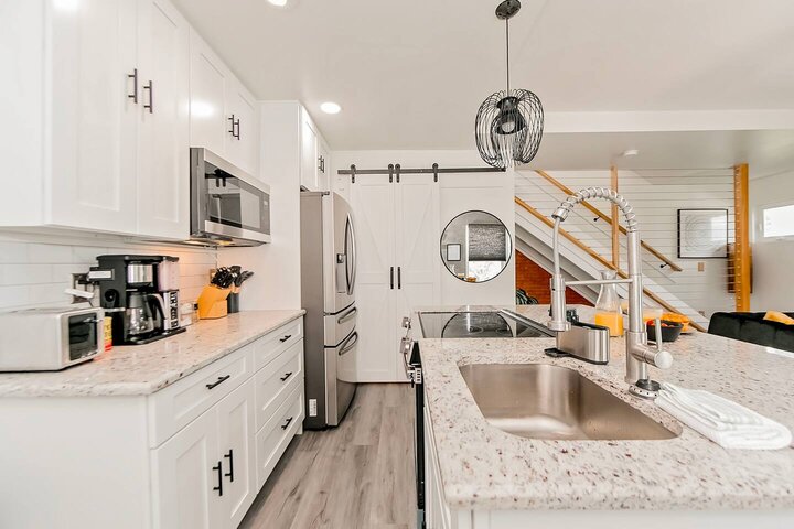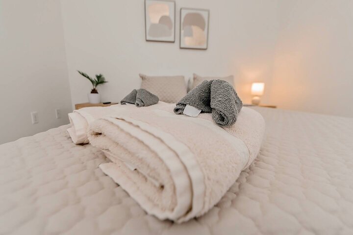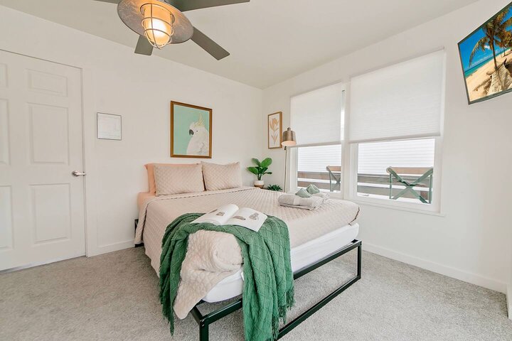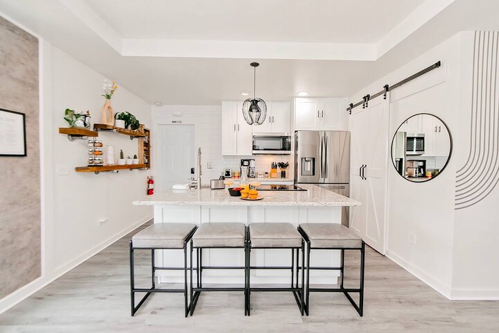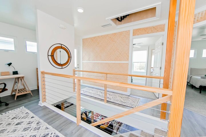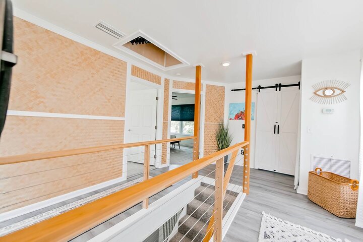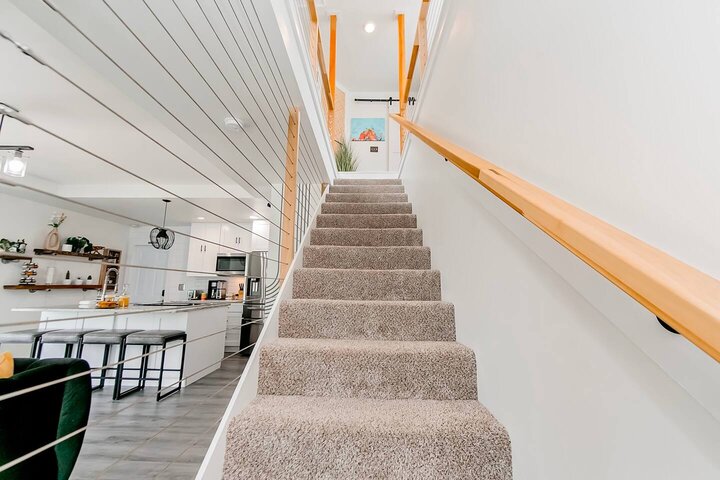 •Home Layout • Upper Unit (2nd and 3rd floor): Two-level home (2nd and 3rd floor) with a private rooftop balcony Includes a chic living area, full kitchen, dining area, 2 bedrooms, and 2 full bathrooms Lower Unit: Single-level (1st floor) home with a spacious open layout Includes a comfortable living area, full kitchen, dining area, 3 bedrooms, and 2 full bathrooms •Bedrooms • Upper Unit (2 Bedrooms): Bedroom 1 – Queen Bed (Sleeps 2) Bedroom 2 – Queen Bed (Sleeps 2) •Bedrooms • Lower Unit...