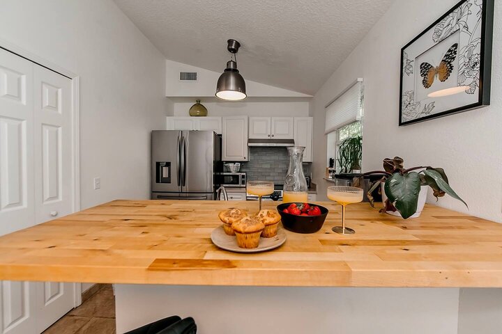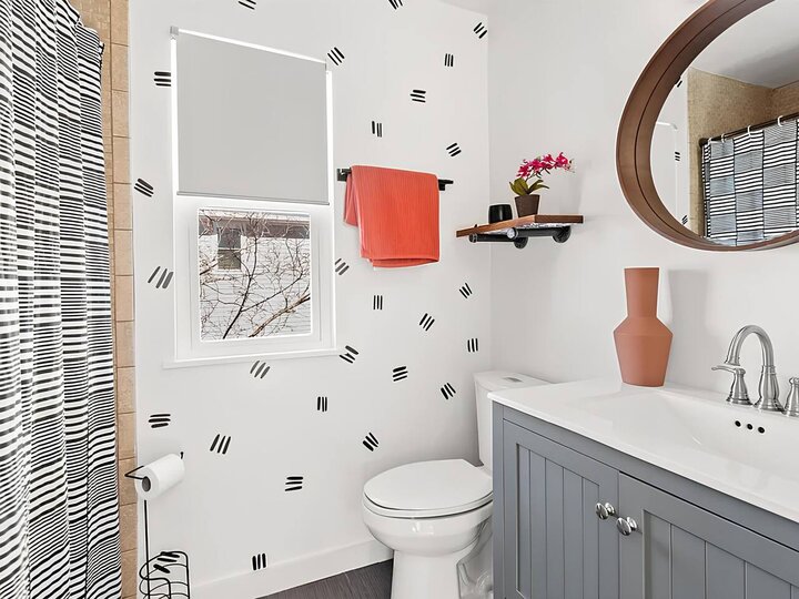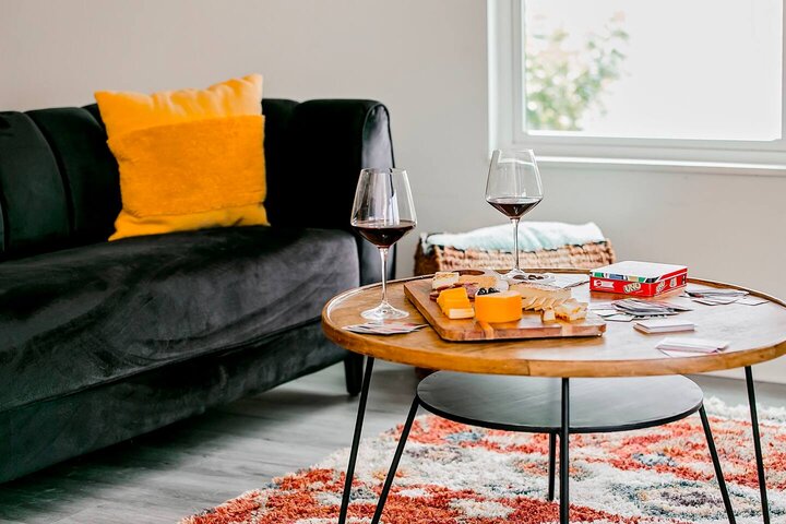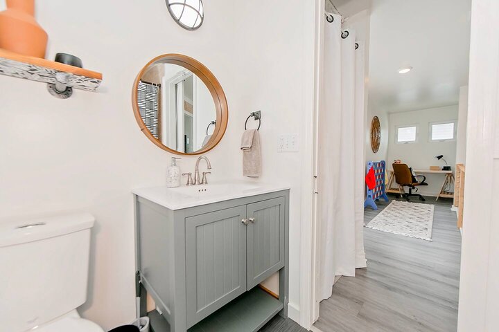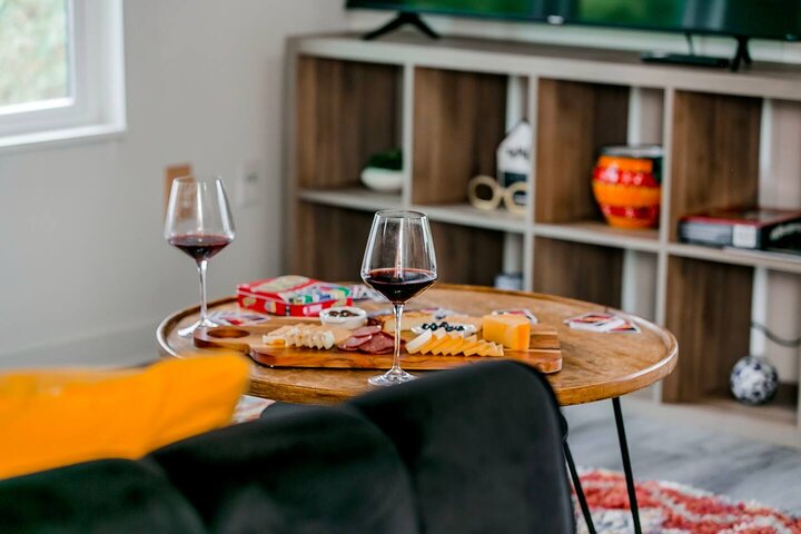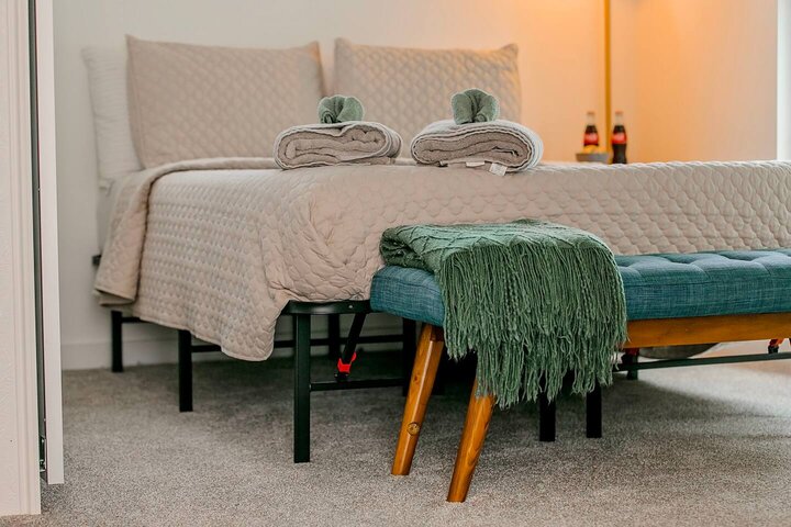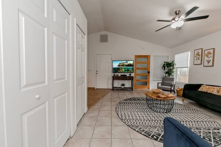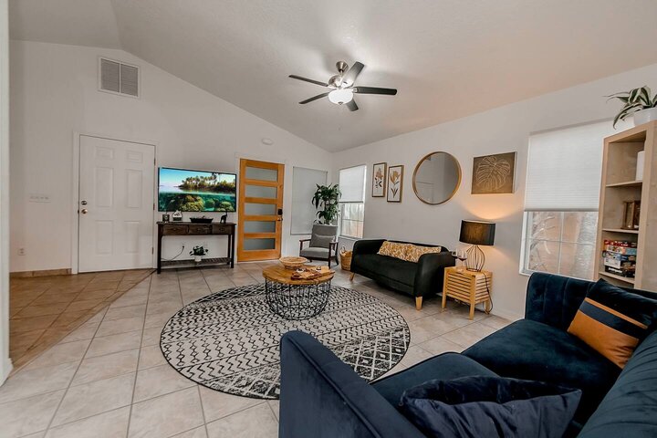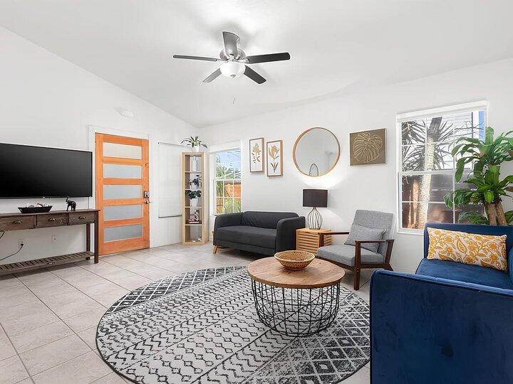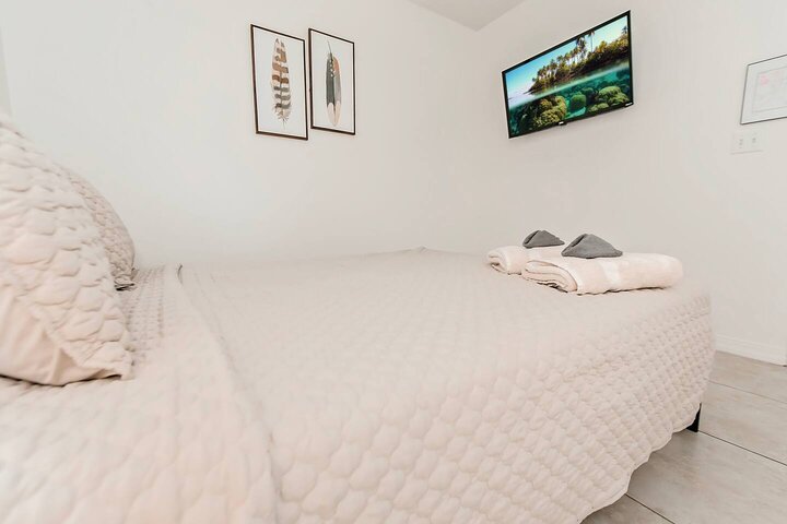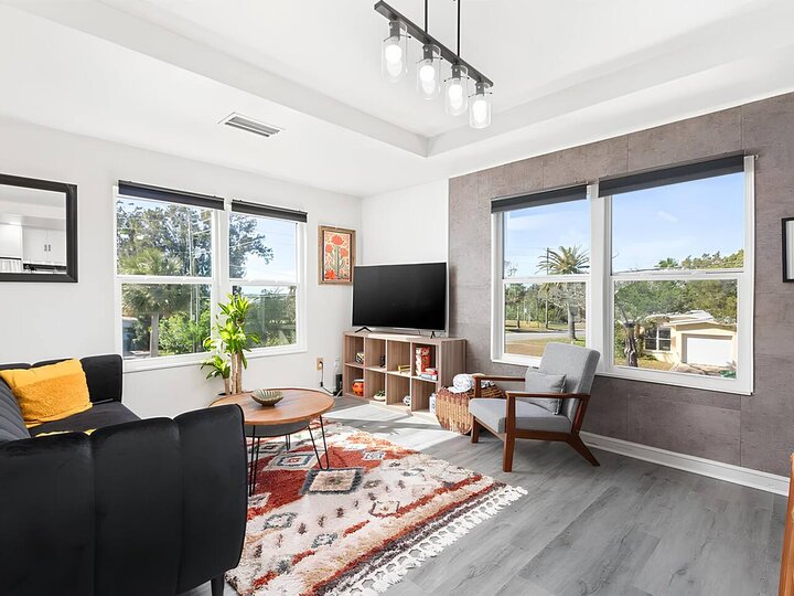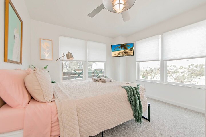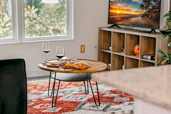 •Home Layout • Upper Unit (2nd and 3rd floor): Two-level home (2nd and 3rd floor) with a private rooftop balcony Includes a chic living area, full kitchen, dining area, 2 bedrooms, and 2 full bathrooms Lower Unit: Single-level (1st floor) home with a spacious open layout Includes a comfortable living area, full kitchen, dining area, 3 bedrooms, and 2 full bathrooms •Bedrooms • Upper Unit (2 Bedrooms): Bedroom 1 – Queen Bed (Sleeps 2) Bedroom 2 – Queen Bed (Sleeps 2) •Bedrooms • Lower Unit...