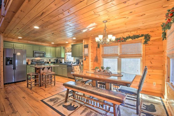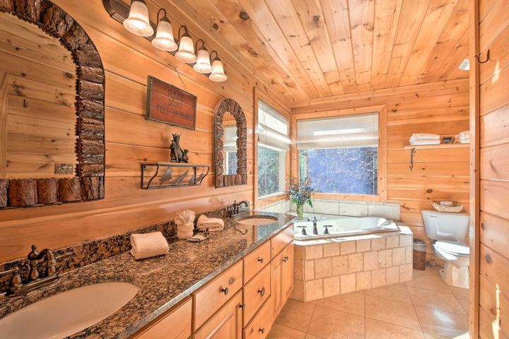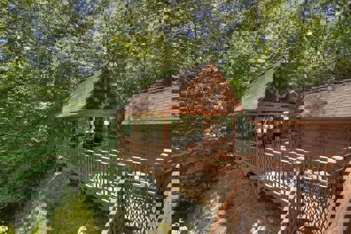 Experience Bliss in the Blue Ridge: Unwind in Your Own Cabin with a Relaxing Hot Tub while listening to the soothing sounds of the nearby creek! WoodHaven is a 3-bedroom, 3-bath cabin which is the antidote to life's stresses. Offering luxurious amenities like a private hot tub along with a picturesque setting in the Blue Ridge Mountains, this vacation rental for 10 is perfect for your next retreat to Mineral Bluff, Georgia! Sit on any one of our four deck areas and listen to the sounds of the c...