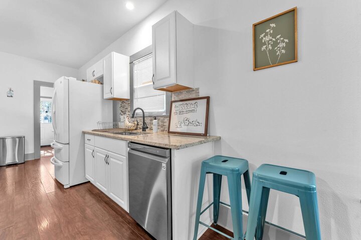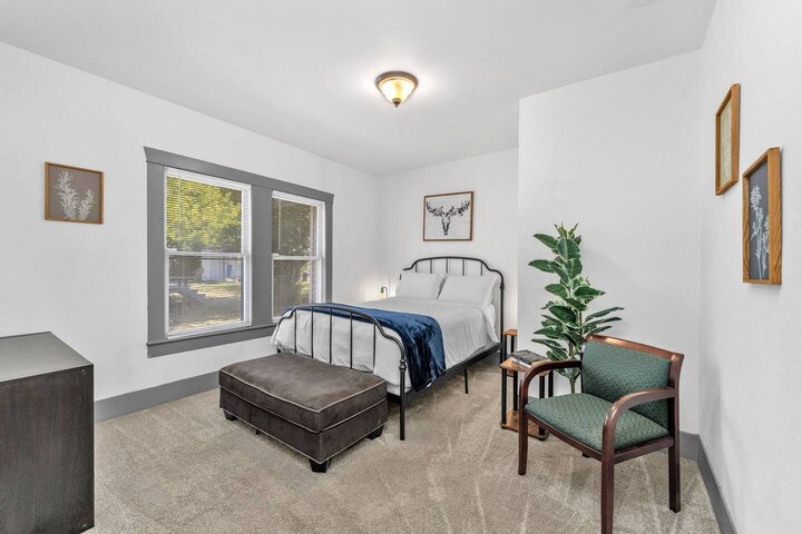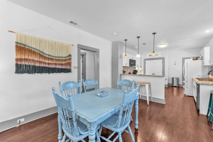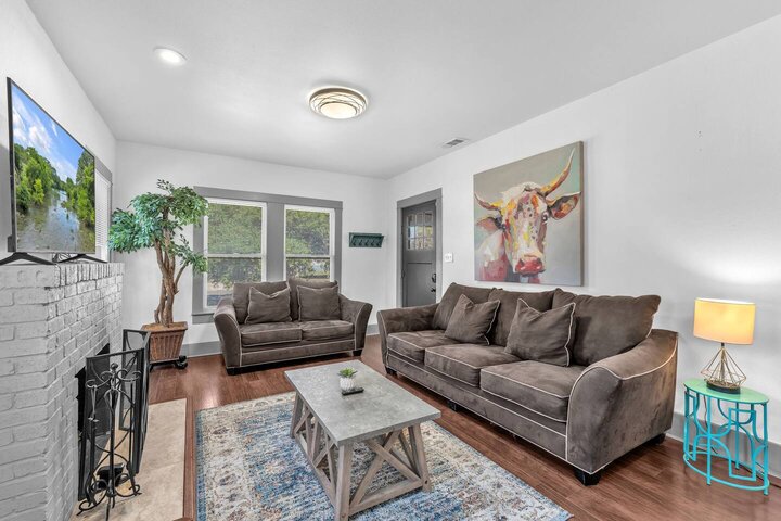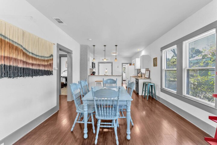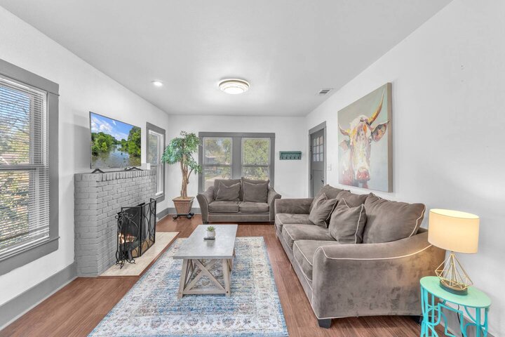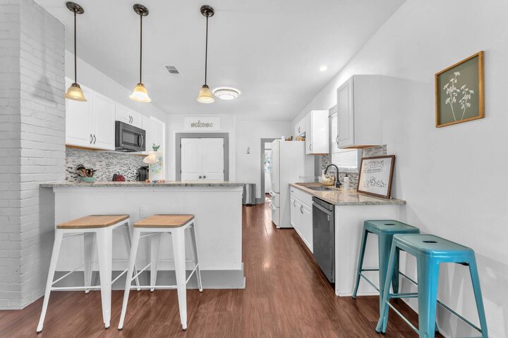 Completely renovated, this beautiful Folk Victorian home is located minutes from downtown. Features like an updated kitchen with new appliances, gorgeous granite countertops, and restored fireplace cannot go unnoticed. With a completely fenced in backyard it is perfect to let the pups and kiddos run around and enjoy their stay. Upon walking into the home you will feel the country essence with the beautiful farmhouse furnishings throughout the living room and kitchen. Hang loose on our comfy cou...