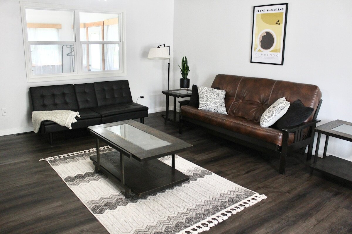 Freshly updated retreat just 5 min to Fort Leonard Wood—sleeps up to 10 with 3 queens and 2 convertible futons. Open-plan living, stocked kitchen, bright sunroom lounge, fast Starlink Wi-Fi and Apple TV make it ideal for graduations, PCS moves or TDY. Quiet neighborhood yet minutes to Route 66 dining, Walmart and I-44. Fully stocked kitchen to make home cooked meals. Local hosts live 10 min away for fast support; driveway fits 3 vehicles and the small fenced yard is pet-friendly. Full upstairs ...