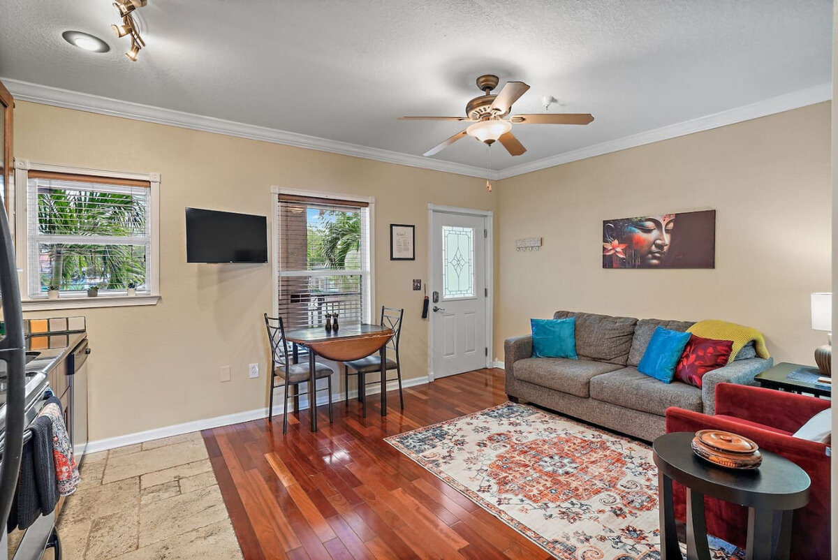 Discover your perfect urban escape at this serene 400 sq. ft. Zen oasis, complete with balconies on both the front and back, offering a seamless connection to the vibrant surroundings of downtown St. Petersburg. This thoughtfully designed 1-bedroom, 1-bathroom studio combines modern style with calming touches, creating a peaceful retreat amidst the city’s lively energy. Inside, the open-concept layout maximizes space with a cozy living area, sleek kitchen featuring stainless steel appliances, a...