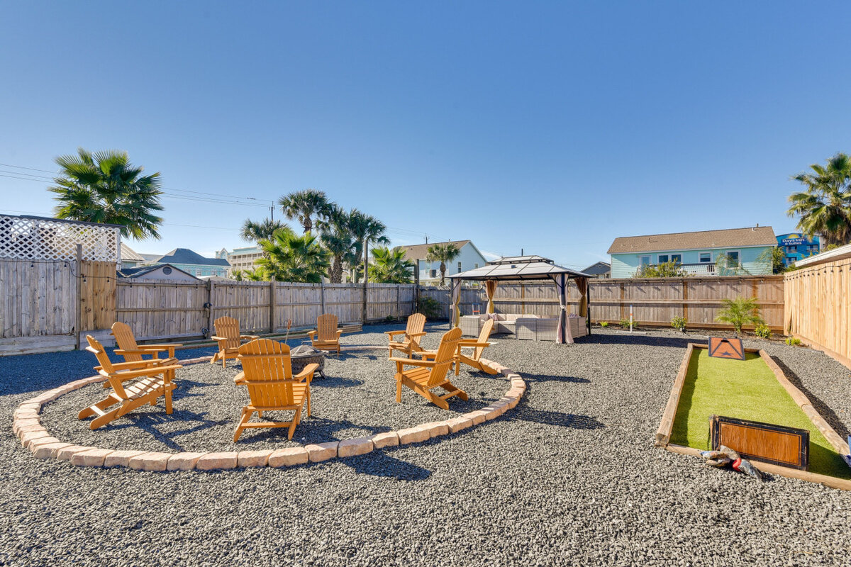 Make beach memories at this vibrant Galveston retreat, just steps from the seawall and close to top attractions. Perfect for families or groups, this cheerful home blends coastal charm with spacious comfort. This home offers: 🌴 Shared yard w/ gazebo, fire pit & games 🍳 Kitchen w/ multiple coffee makers 🛋️ Living room w/ Roku TV & fireplace 🛏️ Sleeps 14 w/ air mattress & Pack ‘n Play 🧺 Laundry & desk workspace Ideal for exploring Pleasure Pier, Moody Gardens & more! The Property: Highlig...