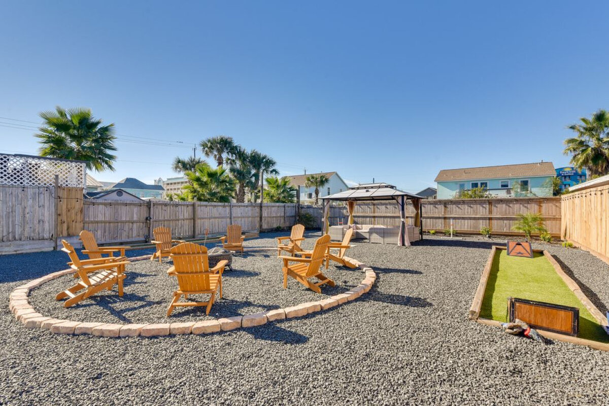 Nestled steps from the Seawall, this charming Galveston home is your ticket to beachside bliss & easy days in the sun. Enjoy a vibrant shared yard, modern comforts, & family friendly spaces for the perfect Gulf Coast stay. This home offers: 🌴 Shared yard w/ gazebo, fire pit and games ☕ Fully stocked kitchen w/ coffee bar 🔥 Cozy electric fireplace & smart TV 🛏 Multiple sleeping options for groups 🐾 Pet friendly w/ fee Perfect for family vacations, beach trips w/ friends, or reunions The Pr...