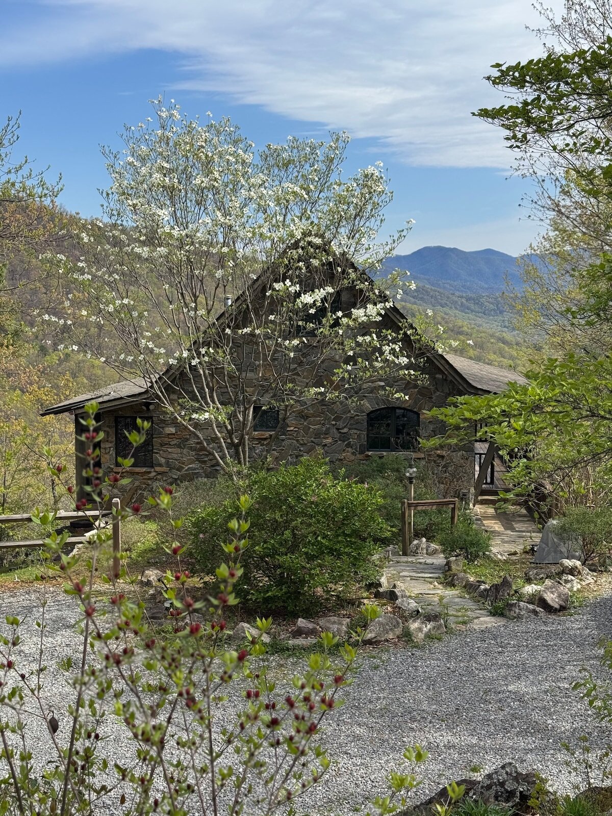 Relax with the whole (or extended) family and friends across our spellbinding pair of mountain homes tucked deep within the enchanted forests of the Blue Ridge Mountains. The storybook stone A-frame cottage, reminiscent of the gingerbread house from Hansel and Gretel, welcomes you onto a covered back deck where you can unwind and take in a postcard-perfect long range views year round. β¨ πΈ IG: @verbenavista Exquisitely crafted, Verbena Vista cabins features high-end finishes across both homes,...