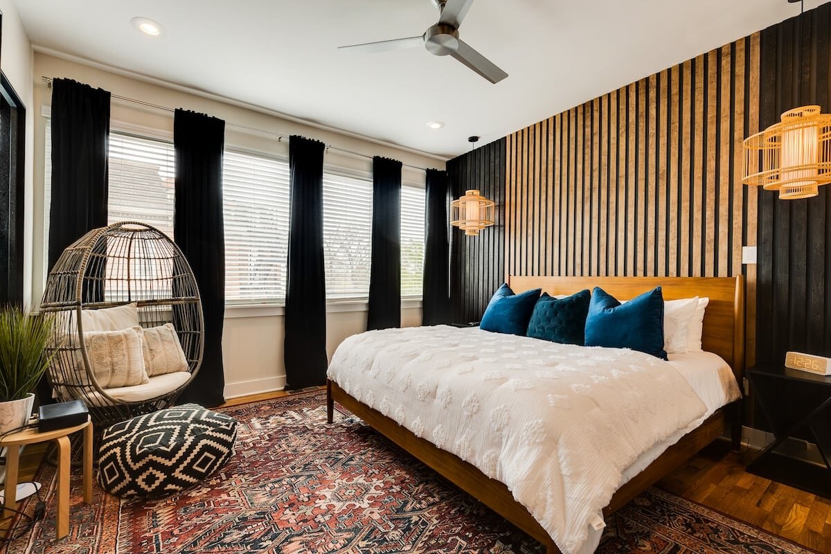 Welcome to Urban Oasis, a sleek 3BR/2BA townhome just 5 minutes from Downtown Nashville. Sleeps 12 with a king suite, 2 queen beds, full-over-full bunks, and a sofa bed. Enjoy modern design, high ceilings, walk-in showers, and an open-concept kitchen and living area. Relax on the outdoor patio or courtyard view. Perfect for families or groups seeking comfort, style, and proximity to Nashville's top attractions. Primary renter must be at least 18 years of age. Guests may be asked to present thei...